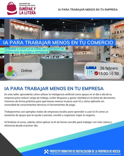 𝐄𝐒𝐓𝐄 𝐉𝐔𝐄𝐕𝐄𝐒 𝐂𝐎𝐍𝐓𝐈𝐍Ú𝐀 𝐍𝐔𝐄𝐒𝐓𝐑𝐎 𝐂𝐈𝐂𝐋𝐎 𝐃𝐄 𝐓𝐀𝐋𝐋𝐄𝐑𝐄𝐒 𝐅𝐎𝐑𝐌𝐀𝐓𝐈𝐕𝐎𝐒 𝐃𝐄 𝐃𝐈𝐆𝐈𝐓𝐀𝐋𝐈𝐙𝐀𝐂𝐈Ó𝐍La Asociación de Comercio y Servicios de Binéfar y La Litera, CECOS Cepyme Huesca y Asociaciones