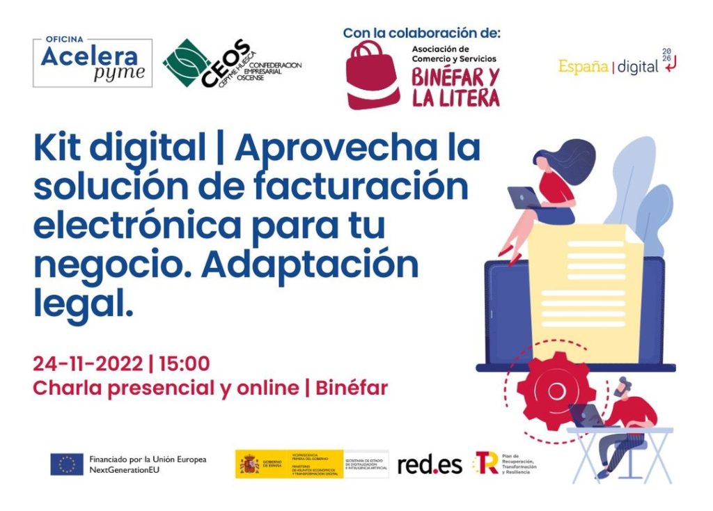 PRIMERA CHARLA OFICINA ACELERA PYME #DIGITALIZACIÓN¡Próximo jueves en #Binéfar! KIT DIGITAL Y NUEVAS NORMATIVAS TRIBUTARIAS PARA COMERCIO Y SERVICIOS. Presencial y OnlineJueves, 24 de noviembreDe 15:00 a 16:30 horas. KIT DIGITAL Y NUEVAS NORMATIVAS TRIBUTARIAS PARA COMERCIO Y SERVICIOS.Ahora es el momento de aprovechar la financiación europea para la digitalización de las empresas. El Kit Digital, se …