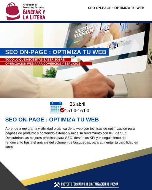 PROGRAMA FORMATIVO DIGITALIZACIÓN PROVINCIAL Taller «SEO ON-PAGE. OPTIMIZA TU WEB» Aprende a mejorar la visibilidad orgánica de tu web con técnicas de optimización para páginas