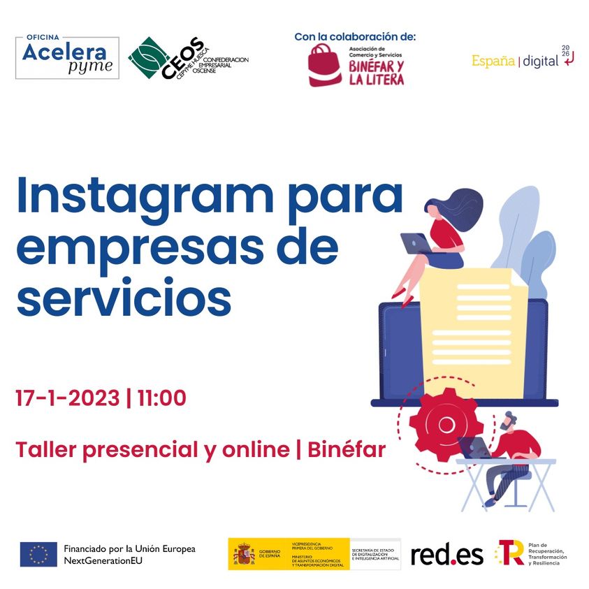 OFICINA ACELERA PYME Próximo WEBINAR gratuito online y presencial en Binéfar, martes 17 de enero: INSTAGRAM PARA EMPRESAS DE SERVICIOS 17-1-2023 11:00 ONLINE y PRESENCIAL -BINÉFAR- Dirigido
