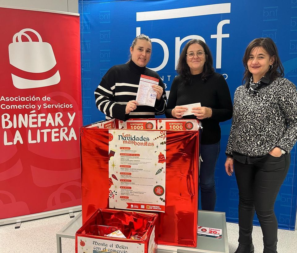 Ayer entregamos el premio referente a la #CampañaNavidad2022 organizada por el Ayuntamiento de la Villa de Binéfar y Asociación Comercio Binefar Litera a Julia Fernández