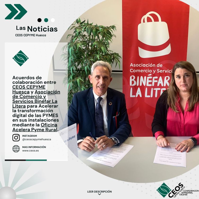 La Asociación Comercio Binefar Litera y CEOS-CEPYME HUESCA han firmado un convenio por el cual la Asociación Comercio y Servicios Binéfar y Litera permite el